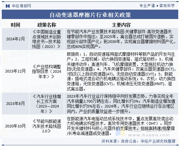 相关报告:华经产业研究院发布的《2025-2031年中国自动变速器摩擦片行业发展监测及投资战略咨询报告》