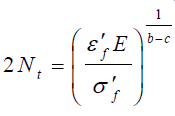 其中,σf称为疲劳强度系数,具有应力量纲;E 是弹性模量,b为疲劳强度指数。εf称为疲劳延性系数,与应变一样,无量纲;c是疲劳延性指数。